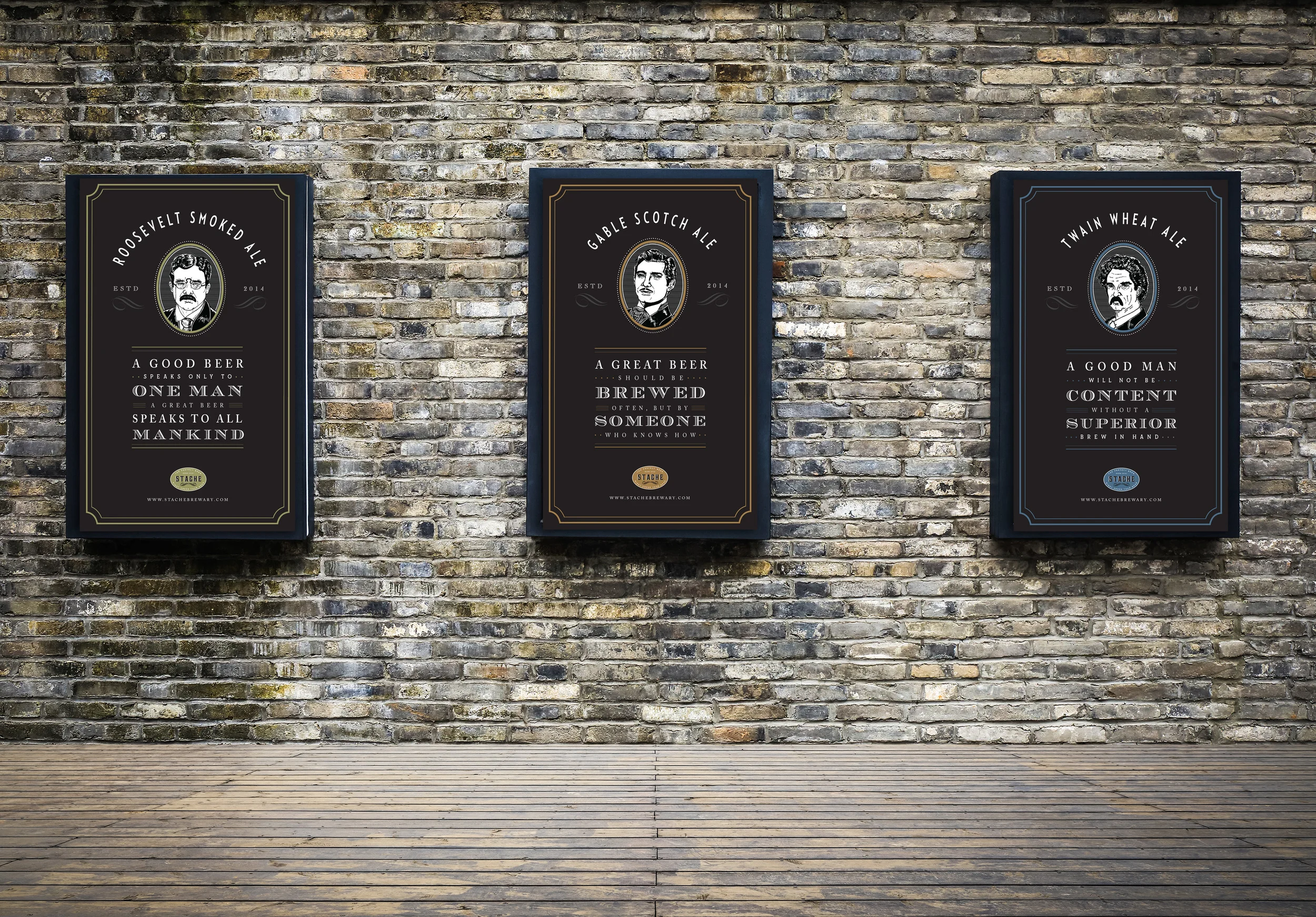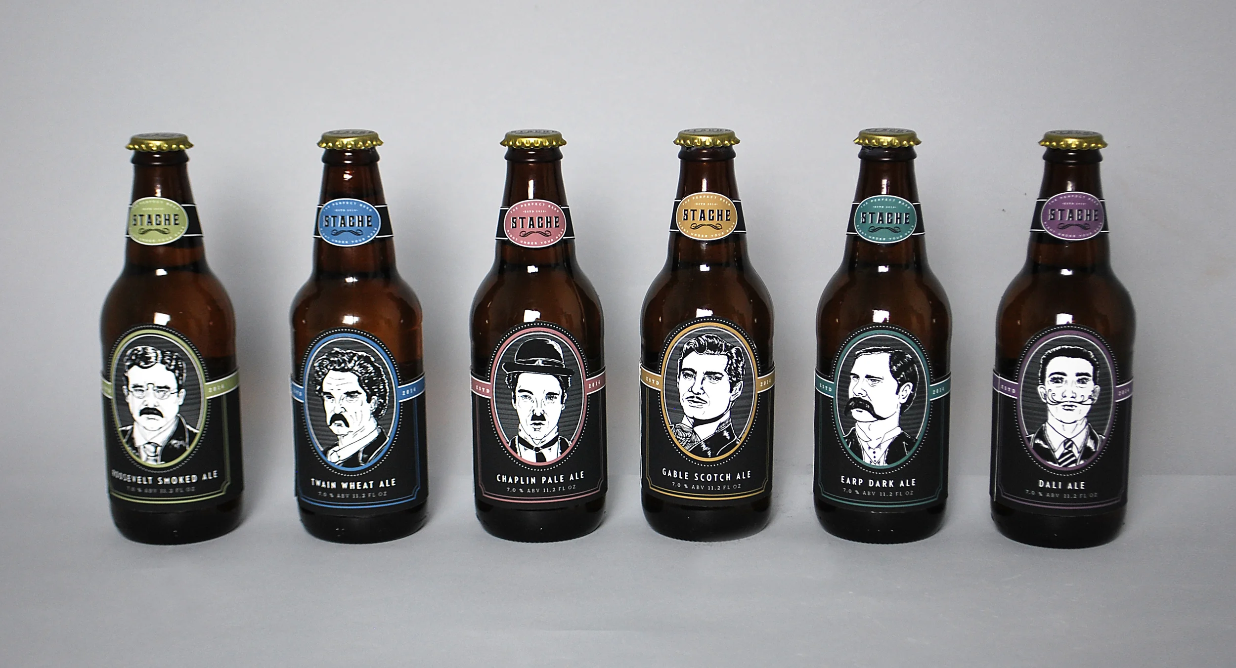 on which I illustrated each man, six neck labels, a six pack carrier, an ad series, bottle caps,